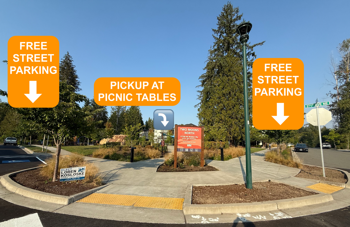 📍 Pickup location: Pickup is located at the City of Duvall Park (Two Moons North park). Find us at the picnic tables in the middle. Duvall is about 20 mins north east of Redmond. From Google Maps, enter "City of Duvall Park": https://g.co/kgs/PHWjdhr